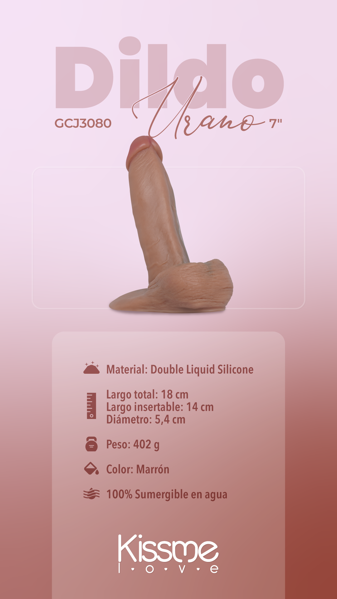 Pene realista con testículos y cuerpo de venas prolongadas. Tiene una base firme para adherirse a superficies planas y hacer un juego a manos libres.