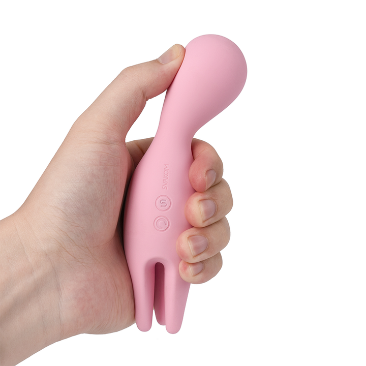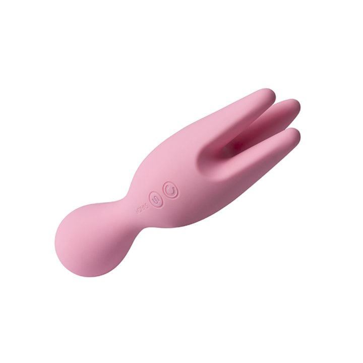 Está diseñado con dos lados diferentes. Su cabeza suave y redonda, estilo varita, brinda una estimulación vibratoria amplia en varios ángulos, gracias a su cuello flexible. Mientras los dedos brindan una estimulación vibratoria en varios ángulos, sus dedos en movimiento tentadores apuntan sensualmente a otras zonas erógenas, llevando tu placer a otro nivel.