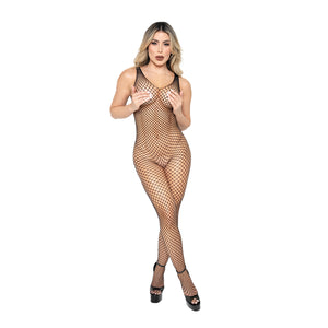 Diseño: Malla de red con patrón de rombos que cubre todo el cuerpo, con un escote pronunciado que añade un toque sexy y sofisticado.