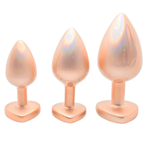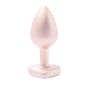 Plug metálico con joya en su base en forma de corazón.