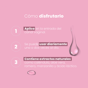 La textura cremosa a base de agua contiene extractos naturales como caléndula Aloe vera romero manzanilla hamamelis bisabodol natural y ácido láctico. Este lubricante íntimo ofrece resultados probados y seguros. Se puede usar diariamente una o dos veces al día.