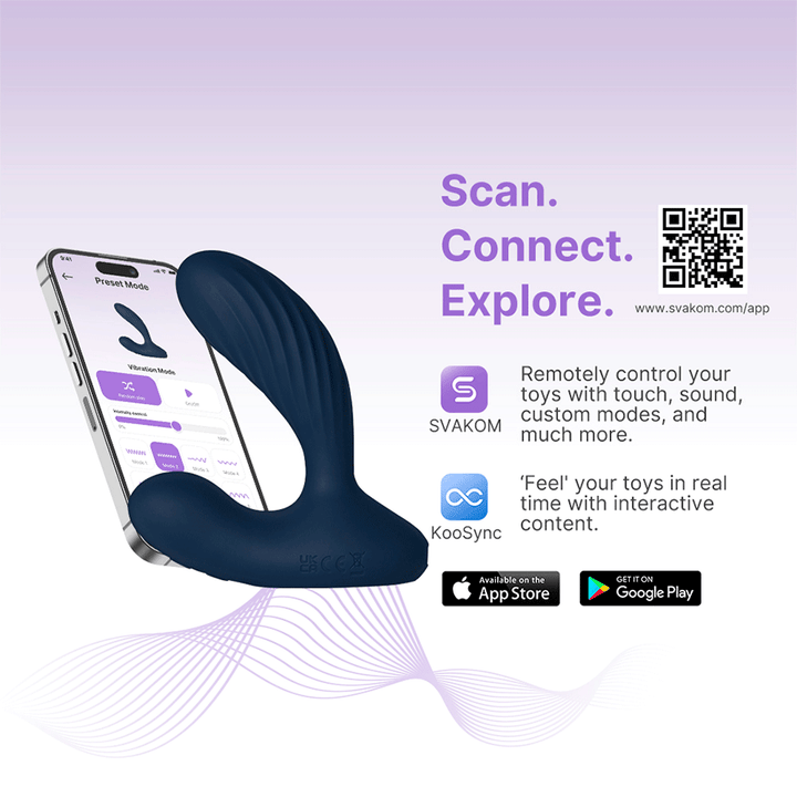 Utilice la aplicación SVAKOM para acceder a más configuraciones, crear las suyas propias y realizar chats de texto, videollamadas o compartir el control con un socio a larga distancia.